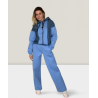 Žydros spalvos su džinsinio audinio detalėmis, pridedančiomis modernumo ir išskirtinumo.