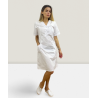 Suknelė darbui iš poliesterio ir medvilnės yra sukurta sujungiant funkcionalumą ir natūralumą. Šis drabužis pasižymi poliesterio atsparumu susiglamžymui ir medvilnės minkštumu, suteikiant darbuotojui patogumą ir tvarkingą išvaizdą. Tai gali būti optimalus pasirinkimas darbui, kai reikia praktiškumo ir stilingo įvaizdžio.