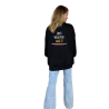 Melns garāks džemperis ar unikāliem akcentiem. Priekšpusē ir izšūts stilīgs Donalda attēls, kas papildināts ar uzrakstu "Life's What You Make It". Uzraksti priekšā un aizmugurē. Fotoattēlā pirmais džemperis ir priekšā, otrais aizmugurē.